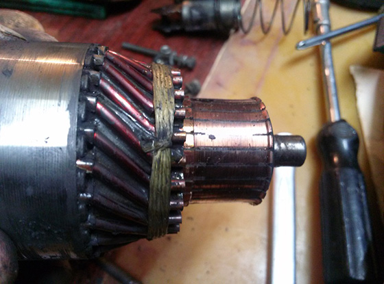 На разобранном стартере легко проверить износ вилки, бендикса, работоспособность обмотки втягивающего реле. Если имеется видимый износ коллектора, в процессе регламентного ремонта его растачивают.